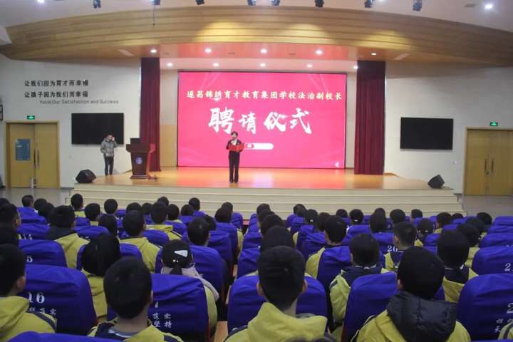 “经研究决定,遂昌县人民检察院党组书记、检察长易远明,遂昌县人民法院党组书记、院长张庆华,遂昌县消防救援大队大队长刘道俊,遂昌县公安局党委委员、副局长邝剑飞被聘请为我校法治副校长,聘期为三年。”在法治副校长聘请仪式上,遂昌育才中学校长毛卫华宣读了关于聘请易远明等同志为法治副校长的决定,并为其亲自颁发聘书,学生代表为他们佩戴校徽。