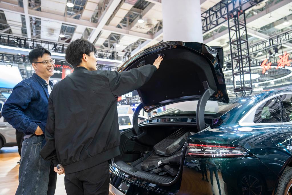 4月30日,观众在2025湖南汽车展览会上参观展车。