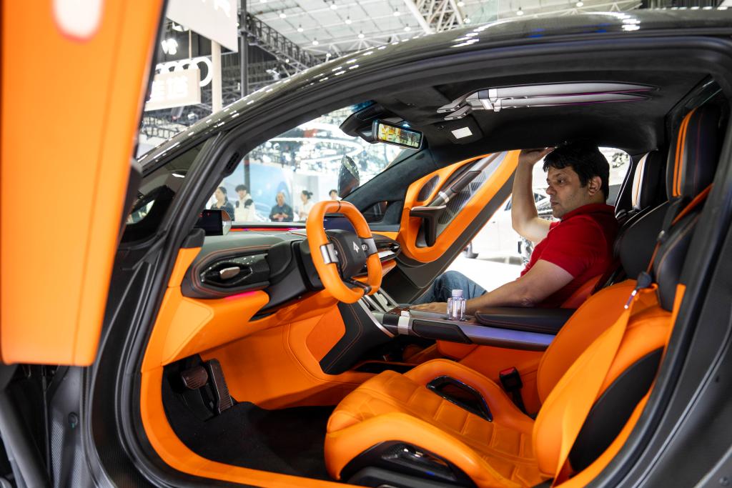 4月30日,观众在2025湖南汽车展览会上了解一款展车。
