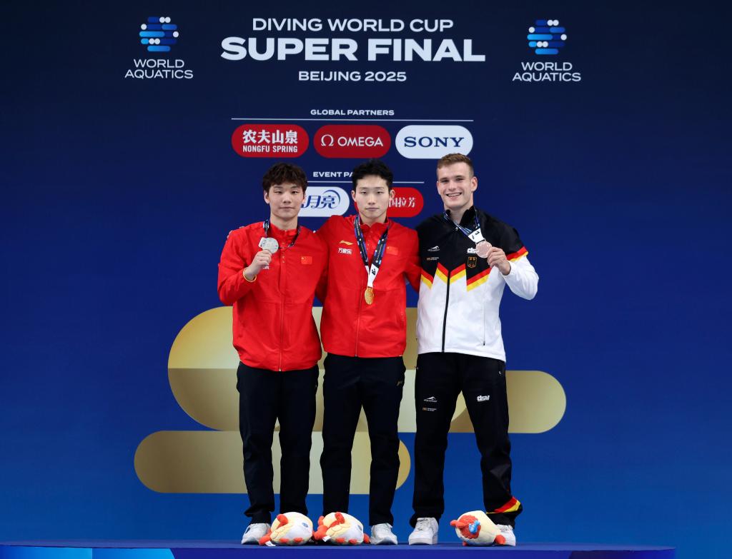 新华社北京5月3日电(记者高萌、李春宇)3日,2025年世界泳联跳水世界杯总决赛在国家游泳中心“水立方”进入第二个比赛日。在当日进行的男单3米板和女单10米台项目中,中国跳水队包揽金银牌。