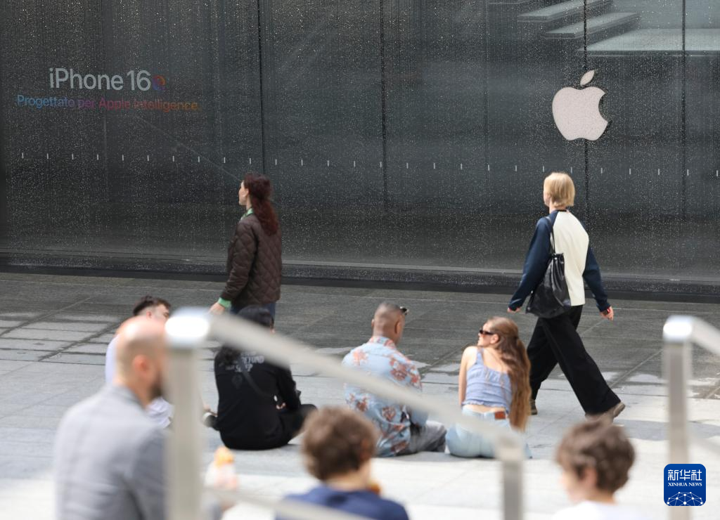 人们在意大利米兰的一家苹果门店购物(4月12日摄)。