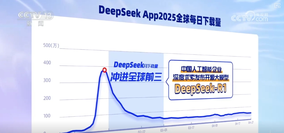 2月,DeepSeek上线。短短几周,下载量冲进全球前三。硬核算法加上流畅体验,外国用户惊喜地发现,中国的大模型也能好用又高效。