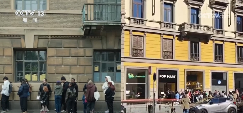 就在这一天,泡泡玛特IP潮玩新品发售。洛杉矶泡泡玛特门店前,数百人排队,甚至有人自带床垫过夜排。剑桥、米兰,同样是人山人海。