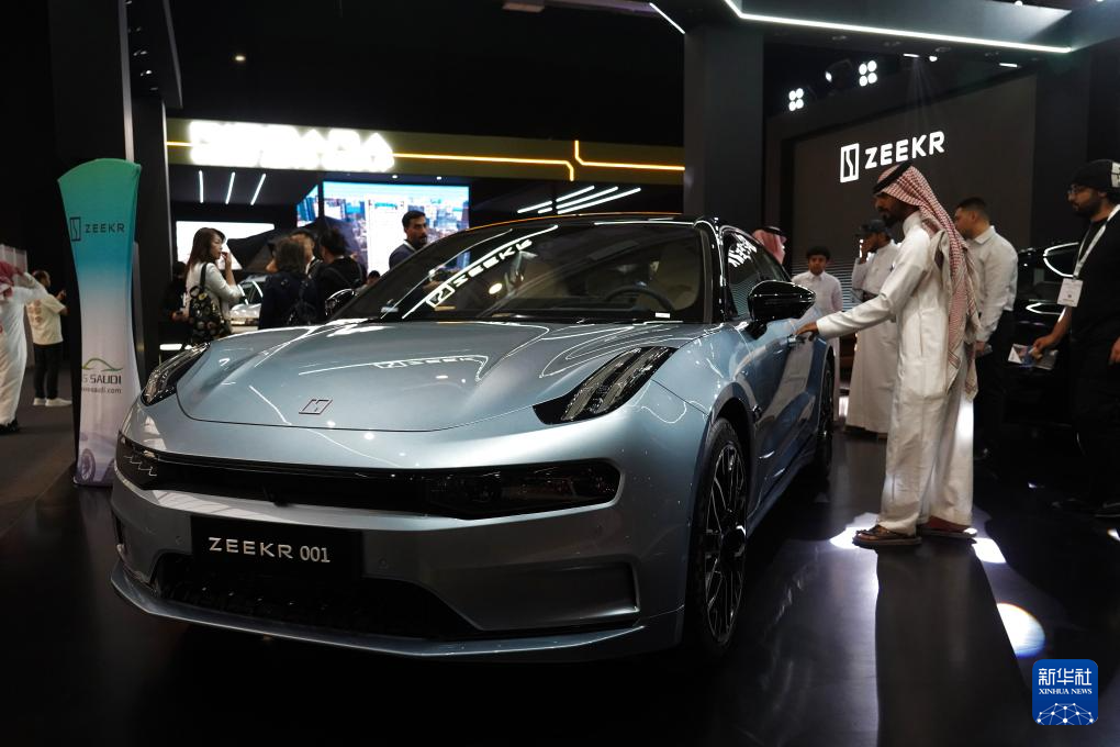 5月4日,在沙特阿拉伯利雅得举办的展会上,观众参观极氪汽车展区。