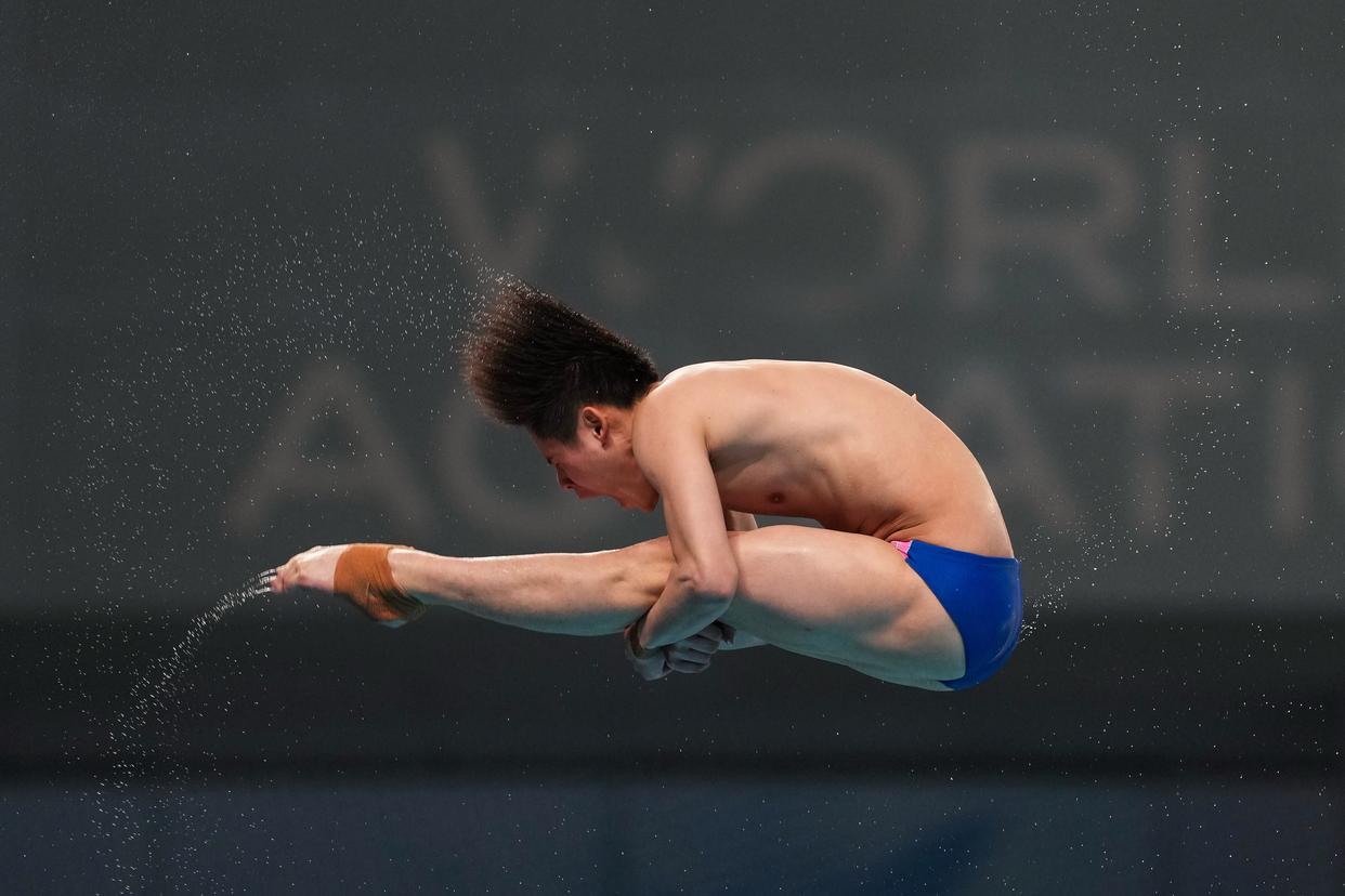 5月4日,朱子锋在决赛中。新华社发(那宇奇摄) 稍晚进行的男子单人10米台决赛中,中国选手朱子锋以571.90分的成绩夺冠,中国选手程子龙、澳大利亚选手鲁索分列第二、三位。
