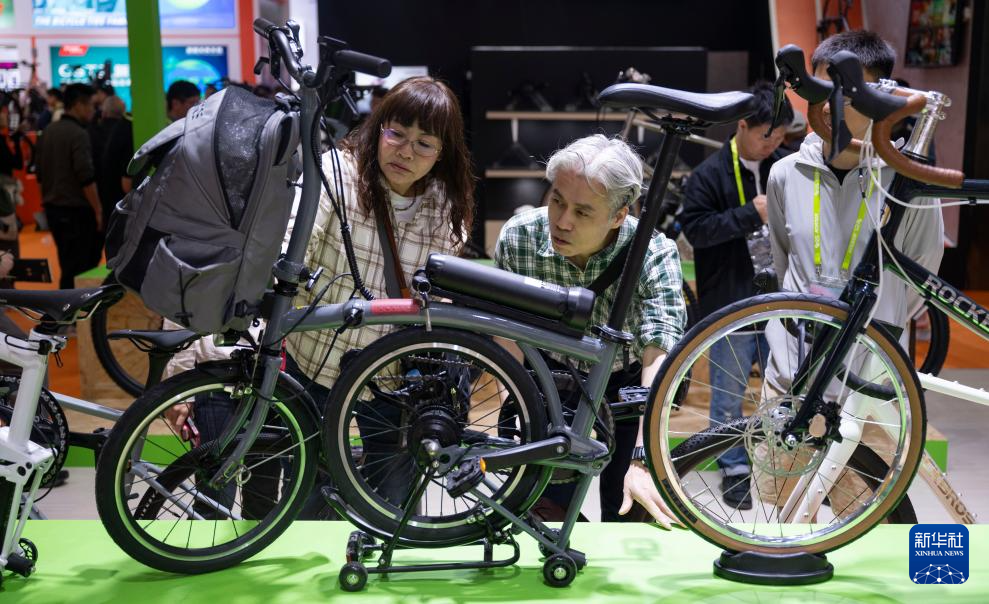 5月5日,在上海新国际博览中心举行的2025中国国际自行车展览会上,来自日本的采购商在观看展品。