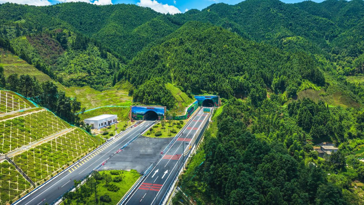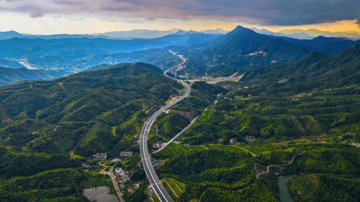 遂大高速蜿蜒穿梭于青山绿水间,如丝带连起山河,绘就交通与自然共融的壮美画卷。(李建平摄)