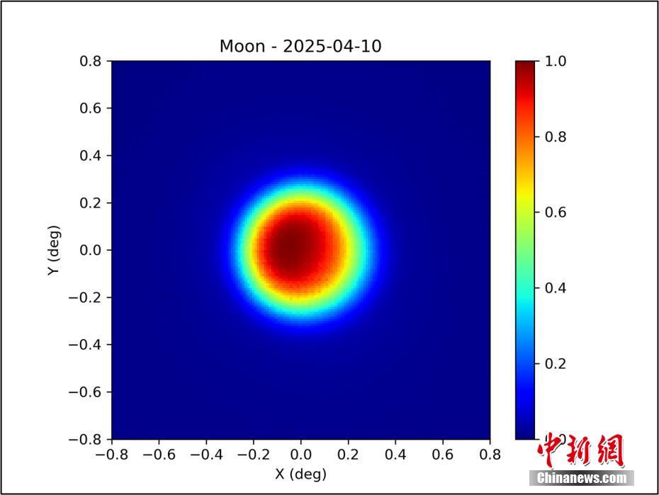7月13日,中国科学院高能物理研究所(高能所)在北京宣布,中国首个原初引力波探测实验——阿里原初引力波探测实验建设取得重大进展,其一期已建成并实现首光观测。资料图为成功获取到月球的150GHz辐射图像。