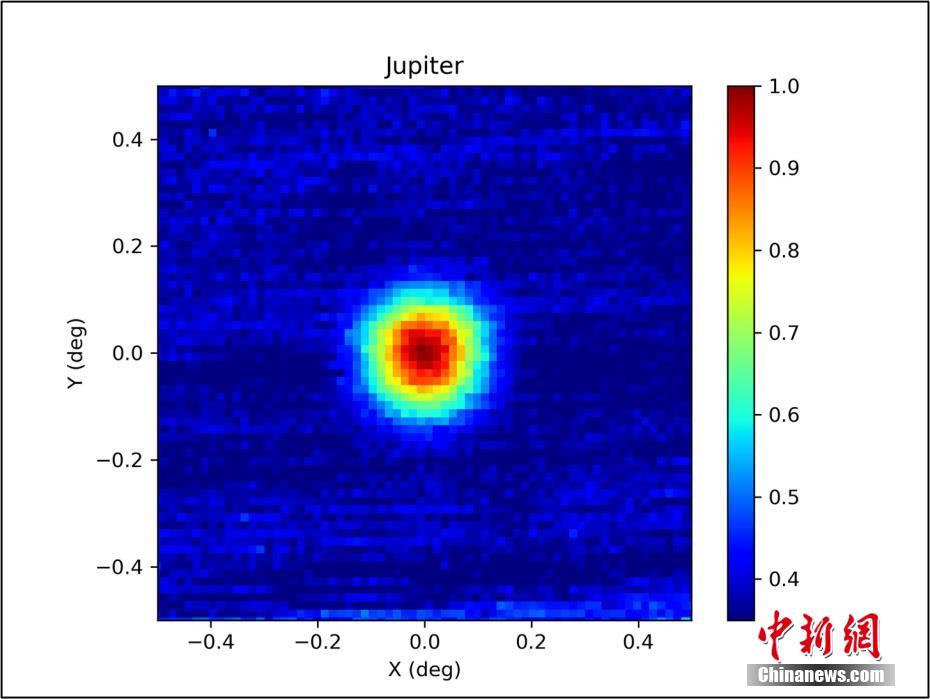 7月13日,中国科学院高能物理研究所(高能所)在北京宣布,中国首个原初引力波探测实验——阿里原初引力波探测实验建设取得重大进展,其一期已建成并实现首光观测。资料图为成功获取到木星的150GHz辐射图像。