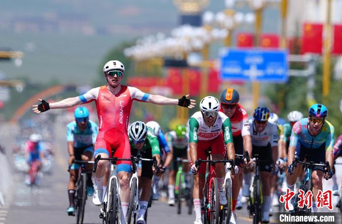 7月13日,青海省海北藏族自治州海晏县,来自李宁之星车队的谢尔比·亚历山大率先冲过终点,张开双臂庆祝胜利。当日,第二十四届环大美青海国际公路自行车赛迎来收官之战——同宝山绕圈赛。该赛段全程121公里,设有1个爬坡点和3个途中冲刺点。最终,来自李宁之星车队的谢尔比·亚历山大获得赛段冠军。中新社记者 马铭言 摄