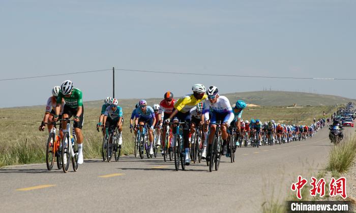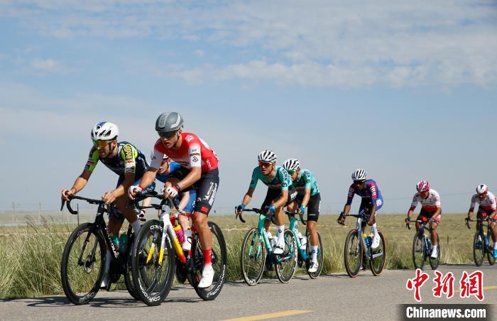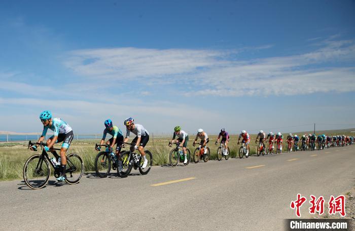 7月13日,车手们在青海省海北藏族自治州海晏县同宝山沿线骑行。当日,第二十四届环大美青海国际公路自行车赛迎来收官之战——同宝山绕圈赛。该赛段全程121公里,设有1个爬坡点和3个途中冲刺点。最终,来自李宁之星车队的谢尔比·亚历山大获得赛段冠军。中新社记者 马铭言 摄