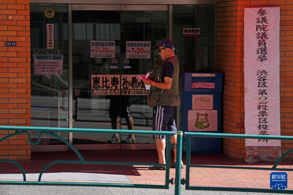 7月20日,一名男子准备进入日本东京的一处投票站参加投票。