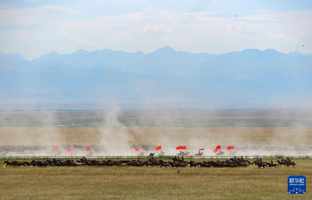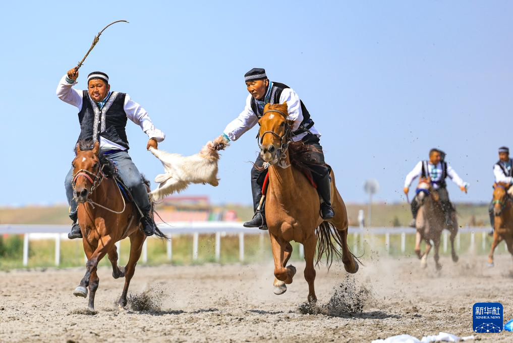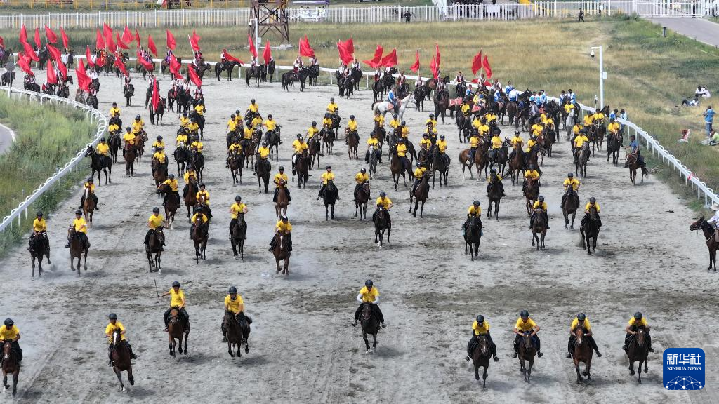 7月19日在新疆昭苏拍摄的2025新疆伊犁天马文化旅游节开幕式“叼羊”表演。