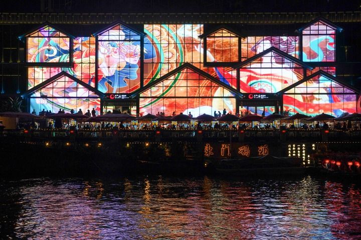 ↑这是2024年10月4日在四川省成都市拍摄的东门码头光影秀。
