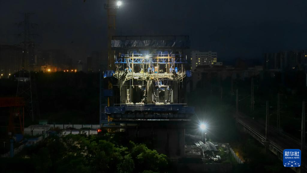 8月28日清晨,工人在钦北线铁路桥新桥工地加紧施工。
