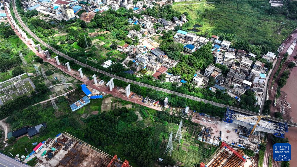 这是建设中的钦北线铁路桥新桥(8月27日摄,无人机照片)。
