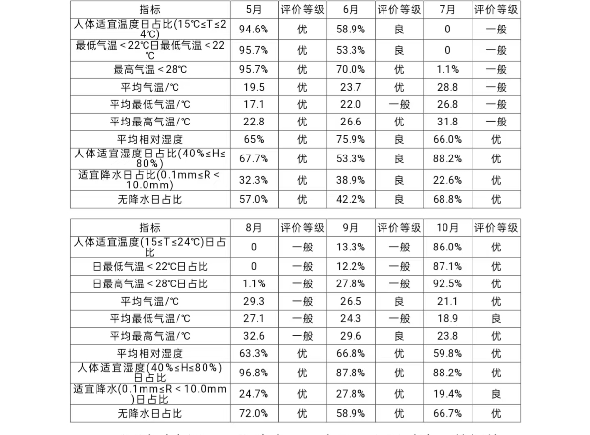 (近三年松兰山度假区5至10月气候条件评价结果,来源象山县气象局)