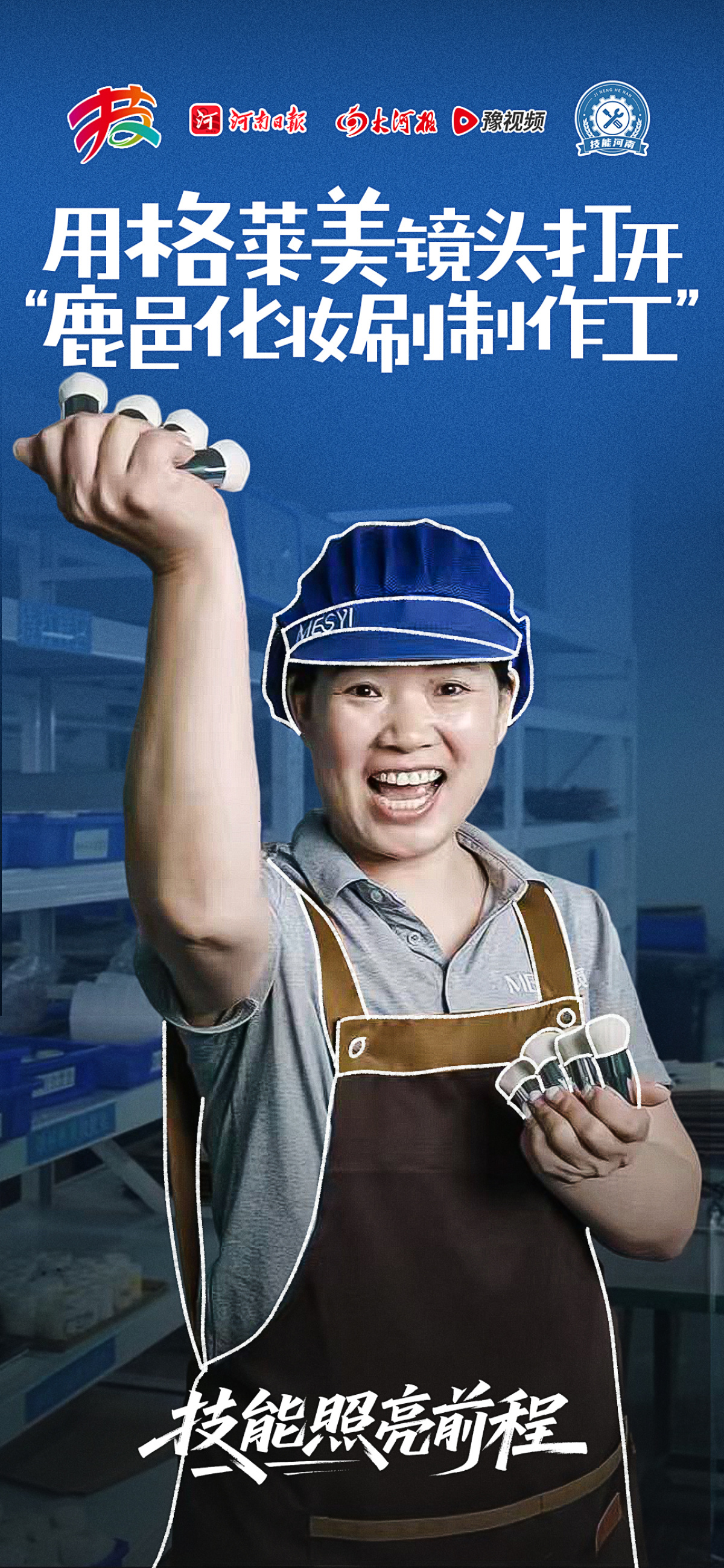 现如今的鹿邑涌现了一大批自创品牌,不断提升着产业的核心竞争力。一把小小的化妆刷之所以能“刷”出如此大的产业,离不开每一位工人的付出,更根本的是离不开技术这一根基。这完美契合了第三届全国技能大赛的主题:“技能照亮前程”。