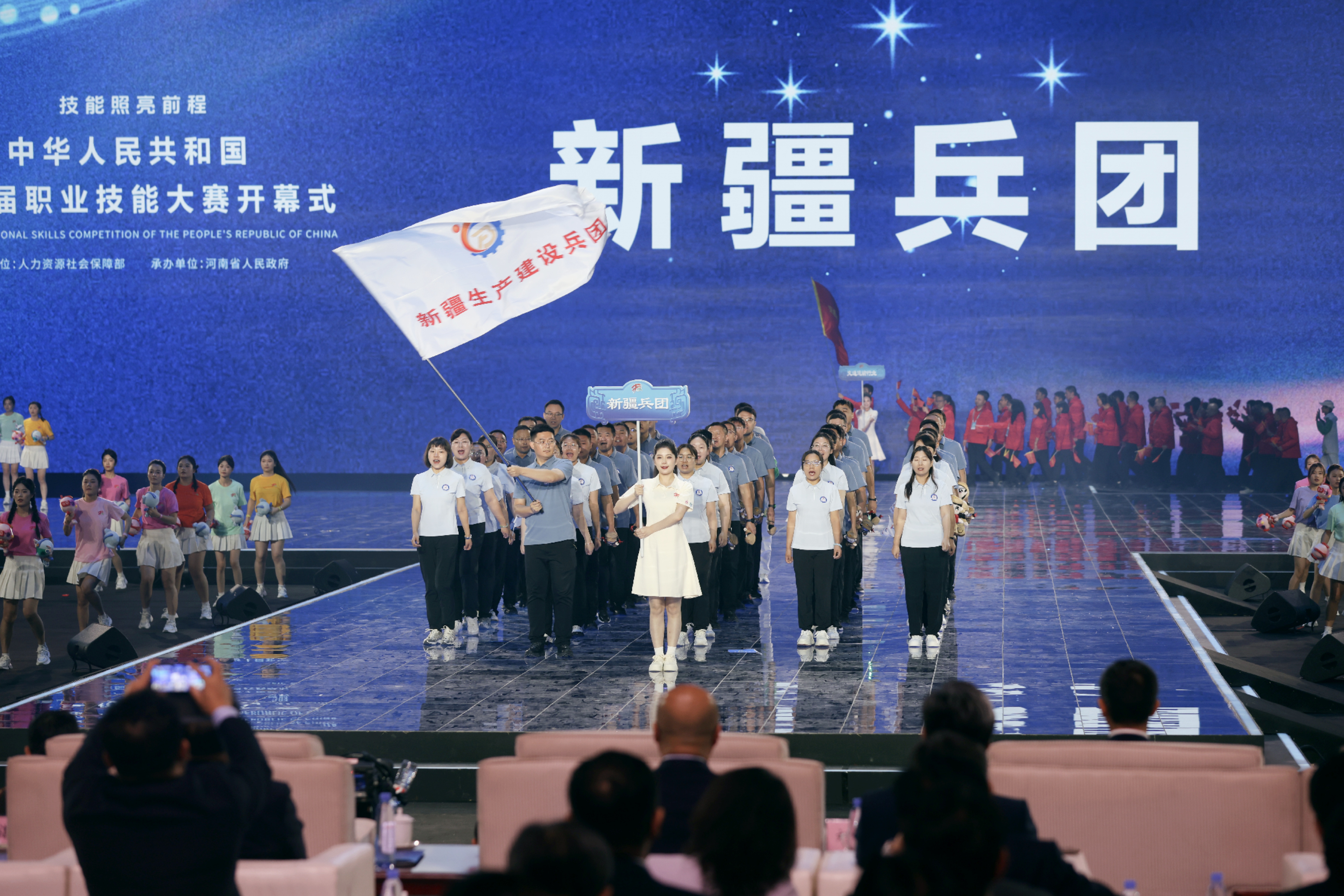 9月19日,第三届全国技能大赛开幕式现场,兵团代表团登场。
