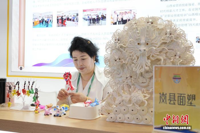 9月19日,河南省郑州市中原国际会展中心,国家级非物质文化遗产代表性项目岚县面塑国家级代表性传承人刘四连展示面塑制作技艺。 解凯光 摄