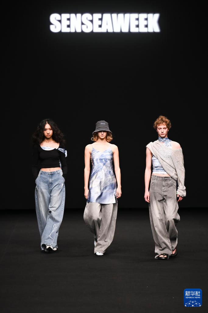 10月9日,模特在2026春夏上海时装周上展示SENSEAWEEK品牌时装。