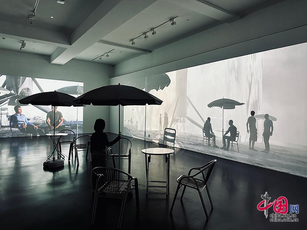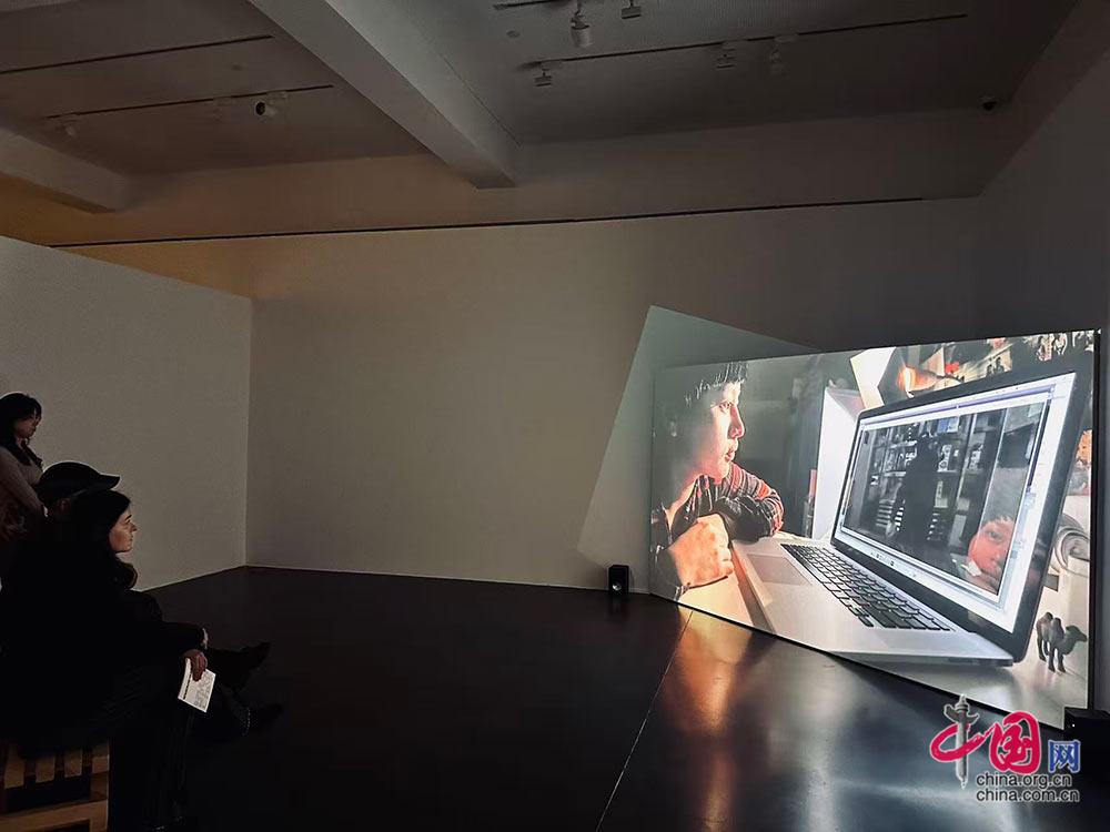 观看艺术展动态影像。中国网戴凡摄影