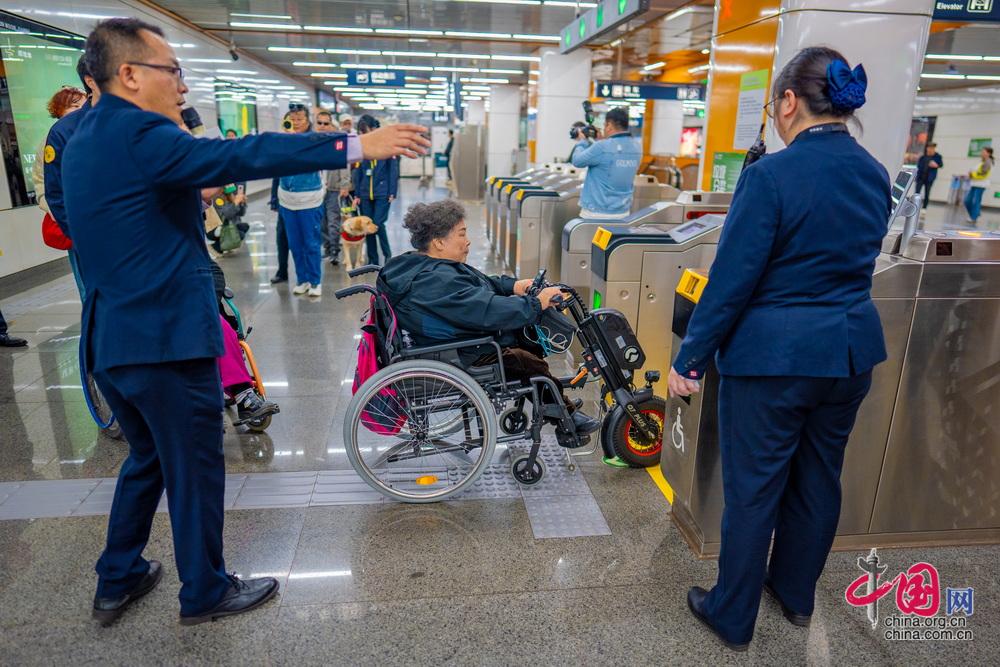 残障乘客代表体验京港地铁无障碍通行服务。中国网记者 郑亮摄