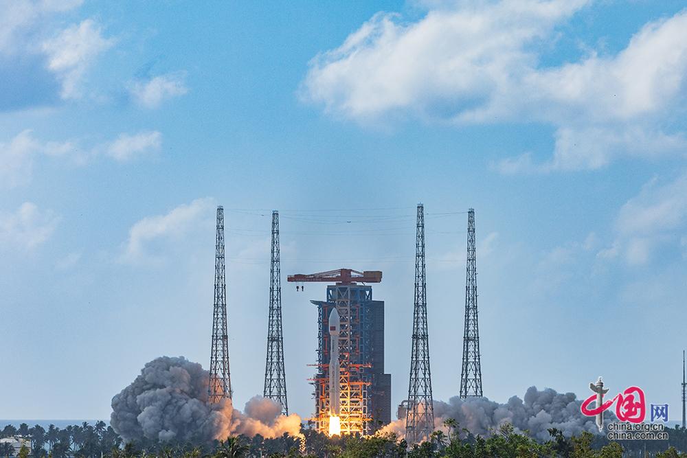 10月16日,长征八号甲运载火箭在海南商业航天发射场一号工位点火起飞,这是我国长征系列运载火箭第600次发射。摄影:沈湜