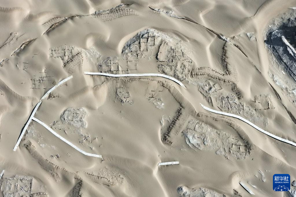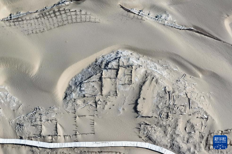这是尼雅遗址内建筑遗迹等(无人机照片,10月17日摄)。