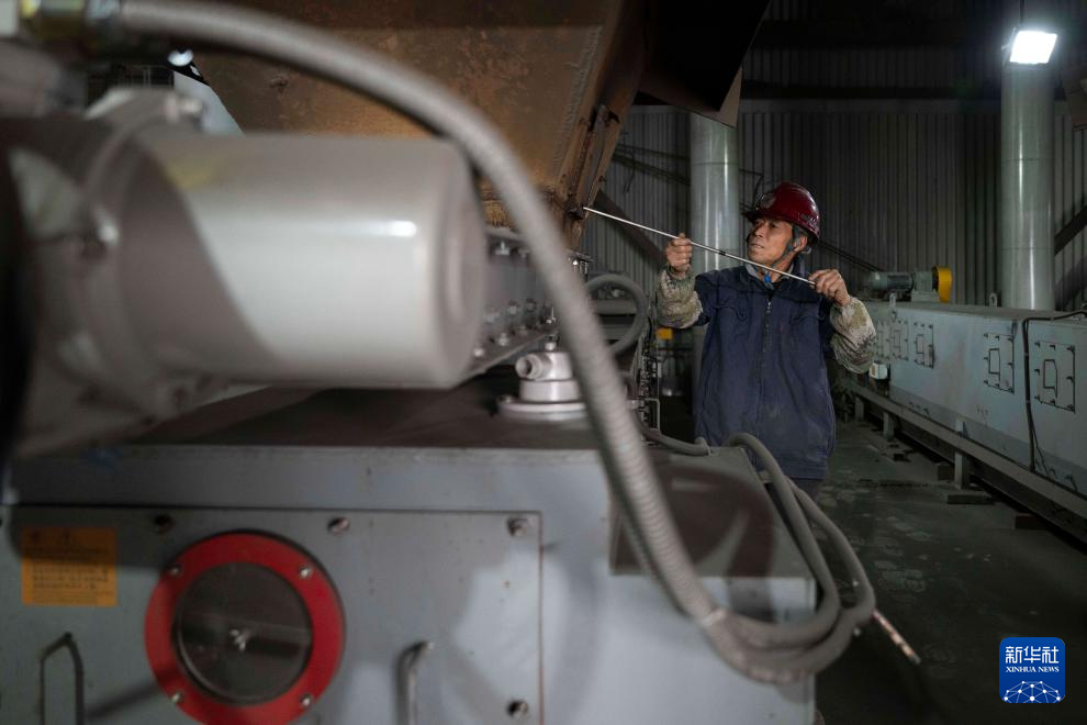 10月20日,在哈尔滨市华能集中供热有限公司,工作人员在检测给煤机运行情况。