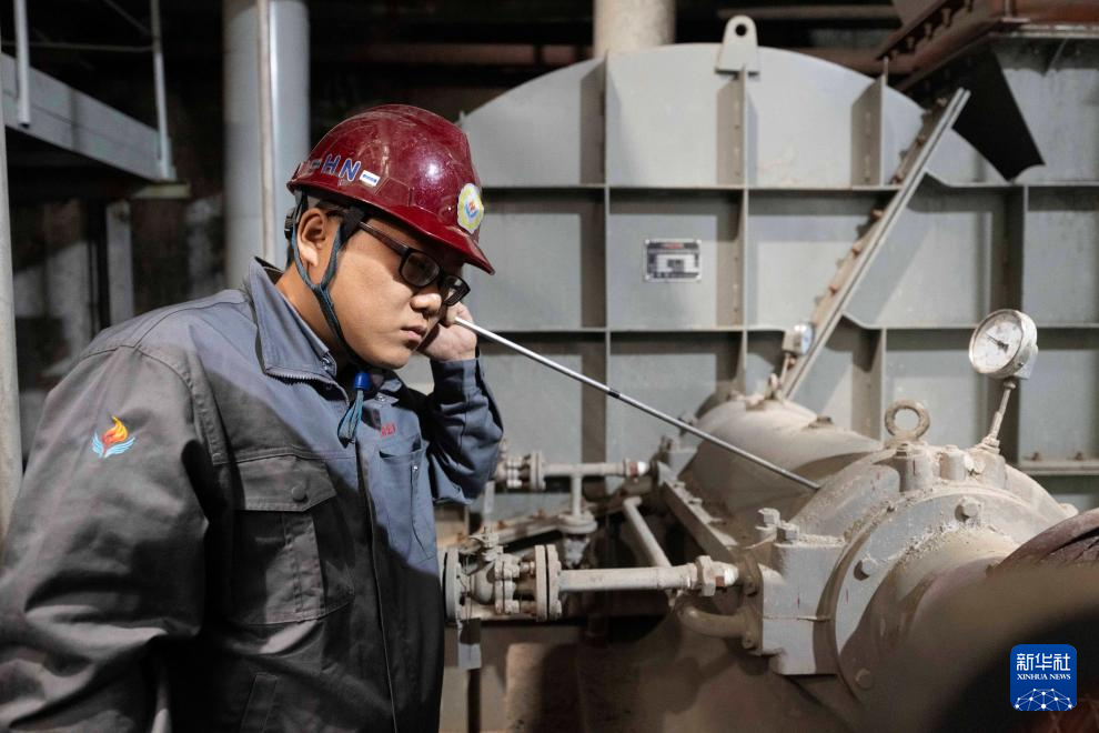 10月20日,在哈尔滨市华能集中供热有限公司,工作人员在检测设备运行情况。