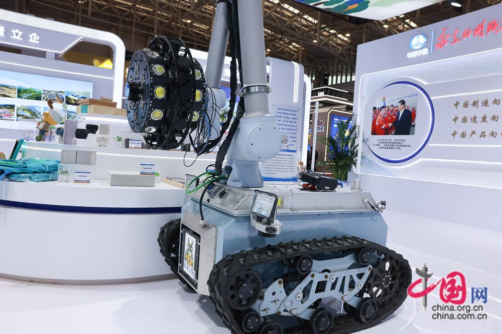 10月23日,2025(第二十七届)中国国际矿业大会在天津开幕,图为现场展出的我国自主研发的智能巡检机器人,解决了尾矿库隧(涵)洞的非进入式自动隧洞结构病害检测与评价技术难题。中国网记者 董宁 摄影