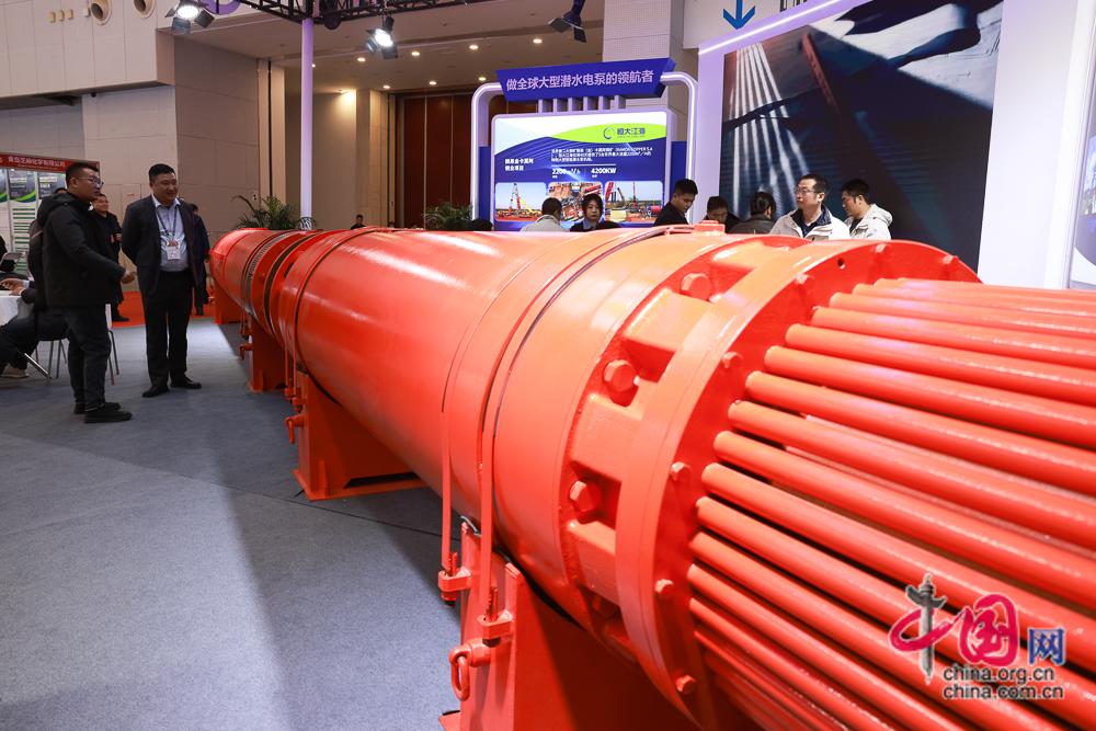 10月23日,2025(第二十七届)中国国际矿业大会在天津开幕,现场展出的矿用大型潜水电泵吸引观众围观。中国网记者 董宁 摄影