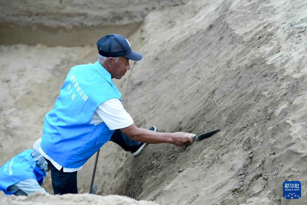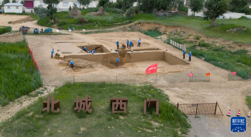 7月4日,在内蒙古呼和浩特市和林格尔县,考古队工作人员对土城子古城遗址北城西门进行考古发掘。新华社记者 马金瑞 摄