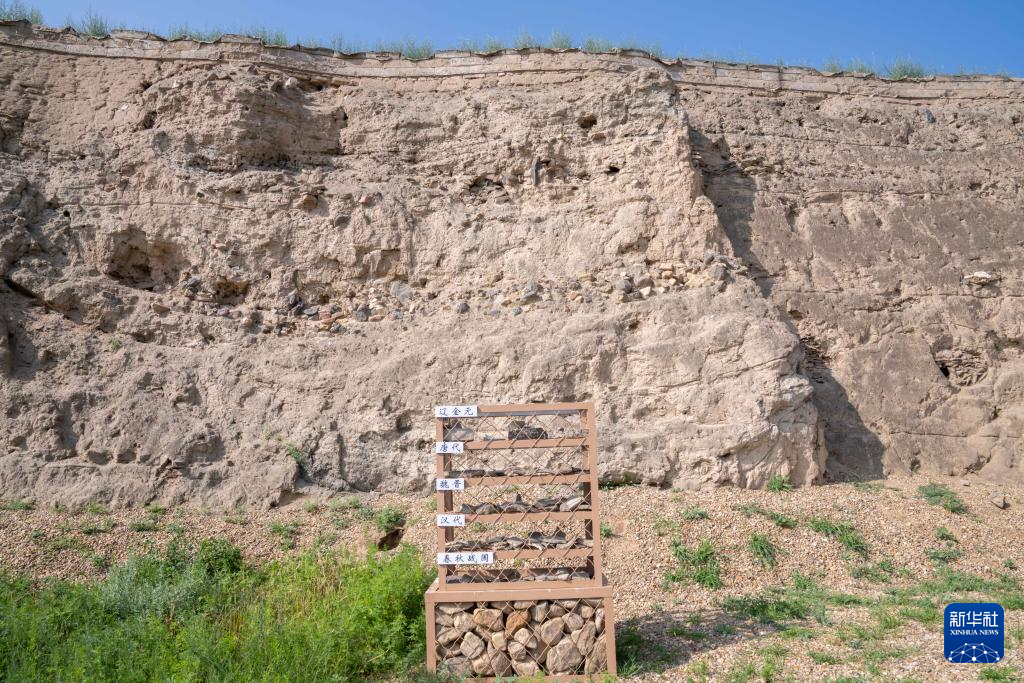 这是7月3日在内蒙古呼和浩特市和林格尔县拍摄的土城子古城遗址的底层剖面。新华社记者 马金瑞 摄