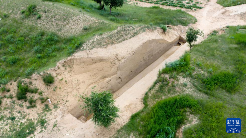 这是7月4日在内蒙古呼和浩特市和林格尔县拍摄的土城子遗址的古城墙剖面(无人机照片)。新华社记者 马金瑞 摄