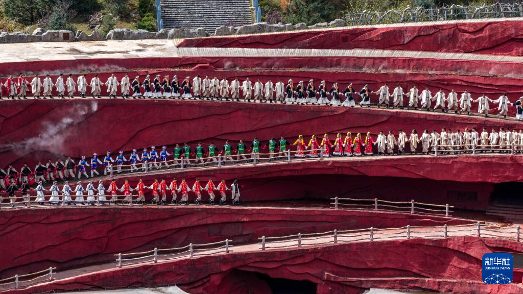 10月26日在丽江市玉龙雪山景区拍摄的《印象丽江》演出现场。
