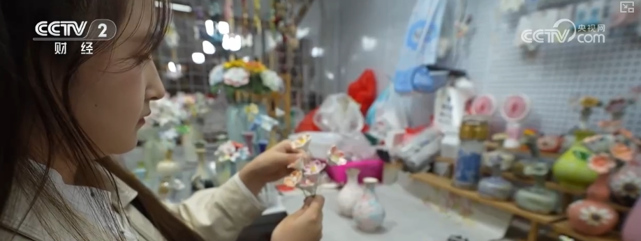 说到仪式感,买花、插花也在年轻人的新观念下变得不一样。在江西景德镇,正流行“夜市边走边插花”,逛一圈陶瓷市集,随手挑几支清新可爱的陶瓷小花,一步步插满花瓶,彰显审美个性,收藏生活小确幸。
