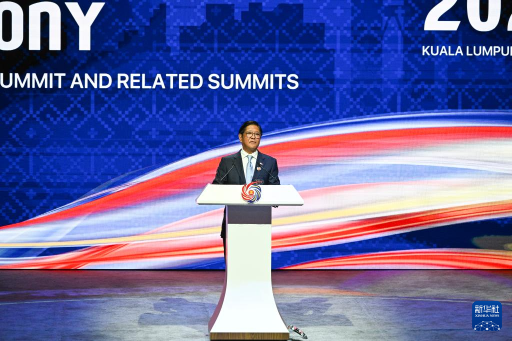 10月28日,在马来西亚吉隆坡,菲律宾总统马科斯在第47届东盟峰会及系列会议闭幕式上讲话。