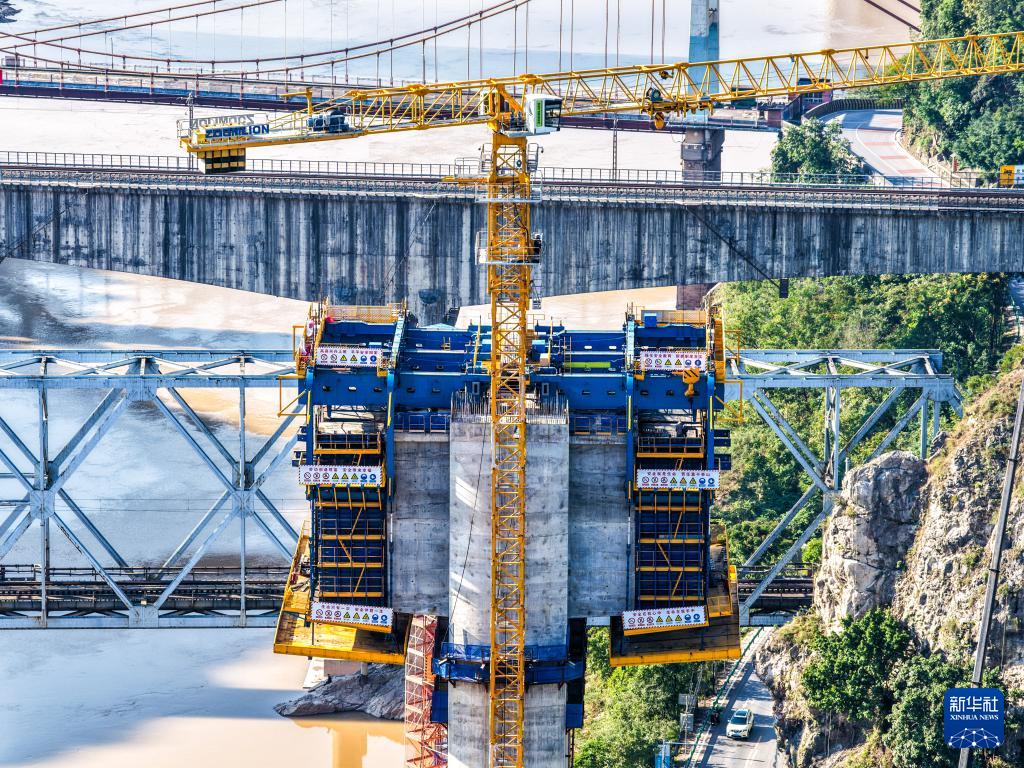 这是10月28日拍摄的西渝高铁嘉陵江特大桥建设现场(无人机照片)。