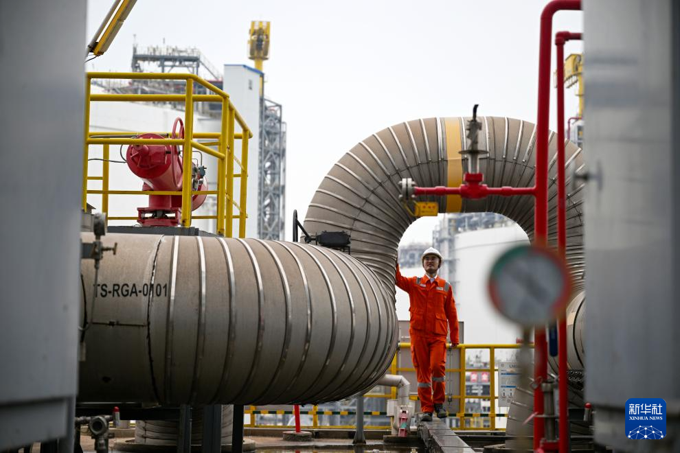 10月31日,国家管网天津LNG接收站工作人员在码头检查输气设备。