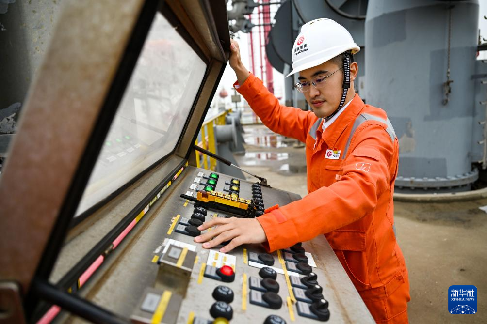 10月31日,国家管网天津LNG接收站工作人员在码头检查设备。