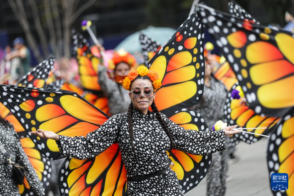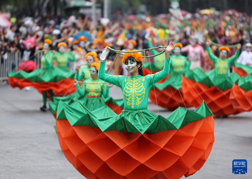 11月1日,在墨西哥首都墨西哥城,演员参加亡灵节游行。