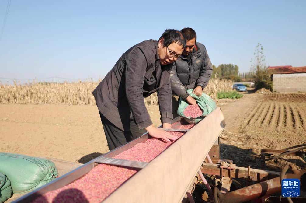 11月3日,河南省平顶山市宝丰县大营镇赵楼村农民在查看冬小麦种子。