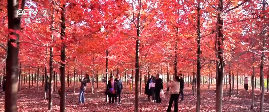 近日,山东莱西的千亩枫叶迎来最佳观赏期,层林尽染的红枫勾勒出乡村的诗意画卷,也带动当地文旅产业发展。