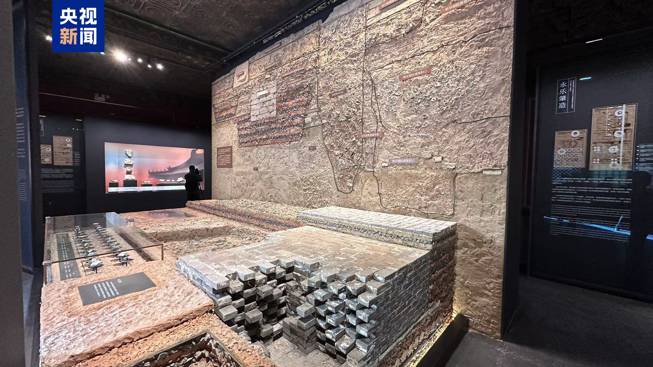 第一单元“紫禁城下的大地史书——元明清三叠层”,通过中心展台以及“管窥金元”“永乐肇造”“崇基荡平”三个板块讲述清宫造办处所在区域的前世:元大都的吉光片羽、明代营建紫禁城时奠定的万世不拔之基、明嘉靖时期对紫禁城外西路的改造。逼真的地层堆积和遗迹模型呈现了紫禁城地下的隐秘世界,述说着这座天子之城的过往岁月。睿思巧构、精湛艺技,展示了古代中国的营造巅峰。