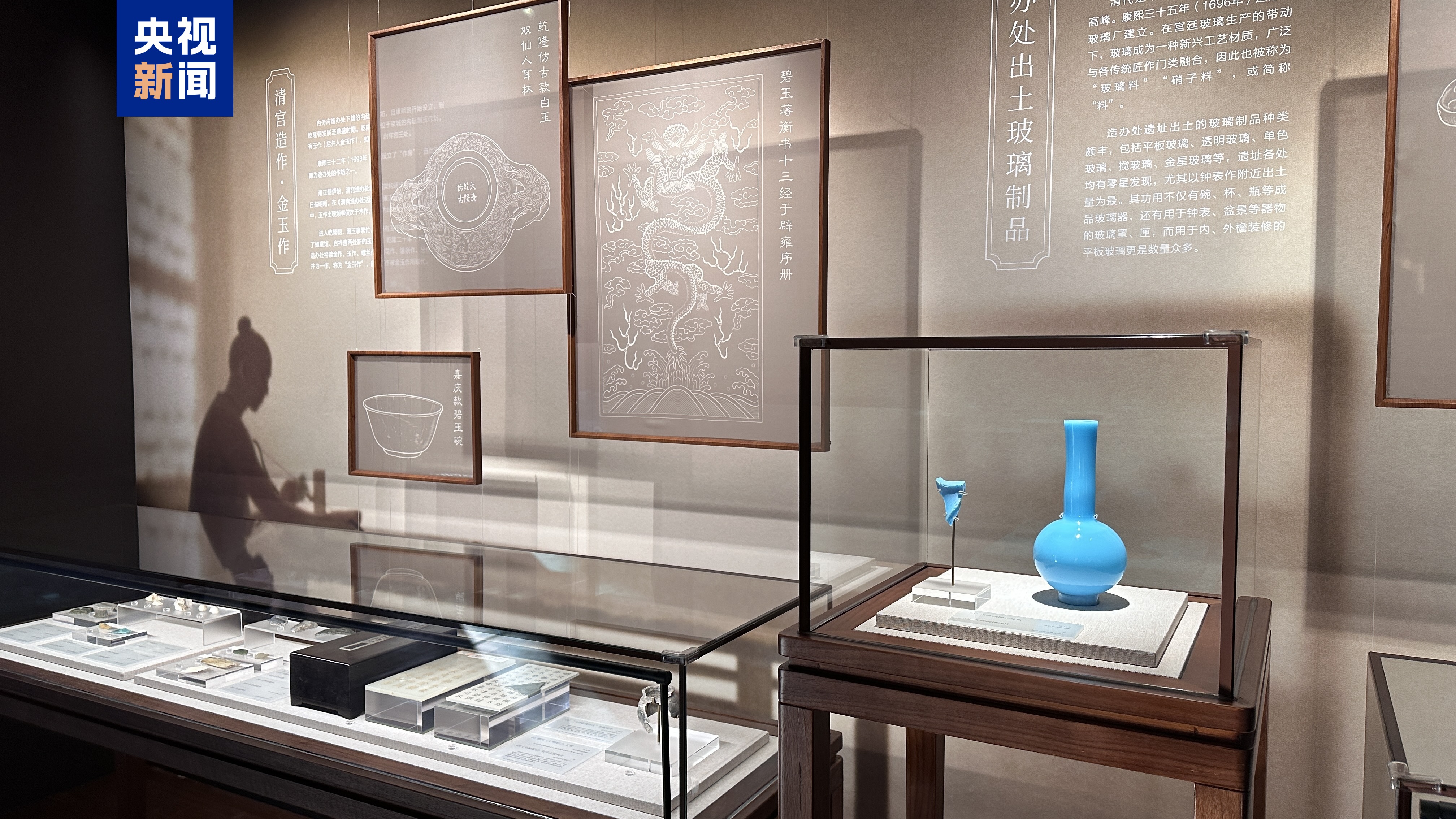 第二单元“紫禁城的手工技艺中心——清宫造办处”,通过“金玉作”“造办处出土玻璃制品”“清代瓷器”“做钟处”“匠人日常”等板块,展现内务府造办处作为清代紫禁城中御用器物的生产中心以及中西方文明交流互鉴历史舞台的重要地位。史料与遗迹互证、遗物与旧藏比对,造办处的印记逐渐清晰,造作留痕、匠艺有证,古代中国手工技艺极盛于斯。
