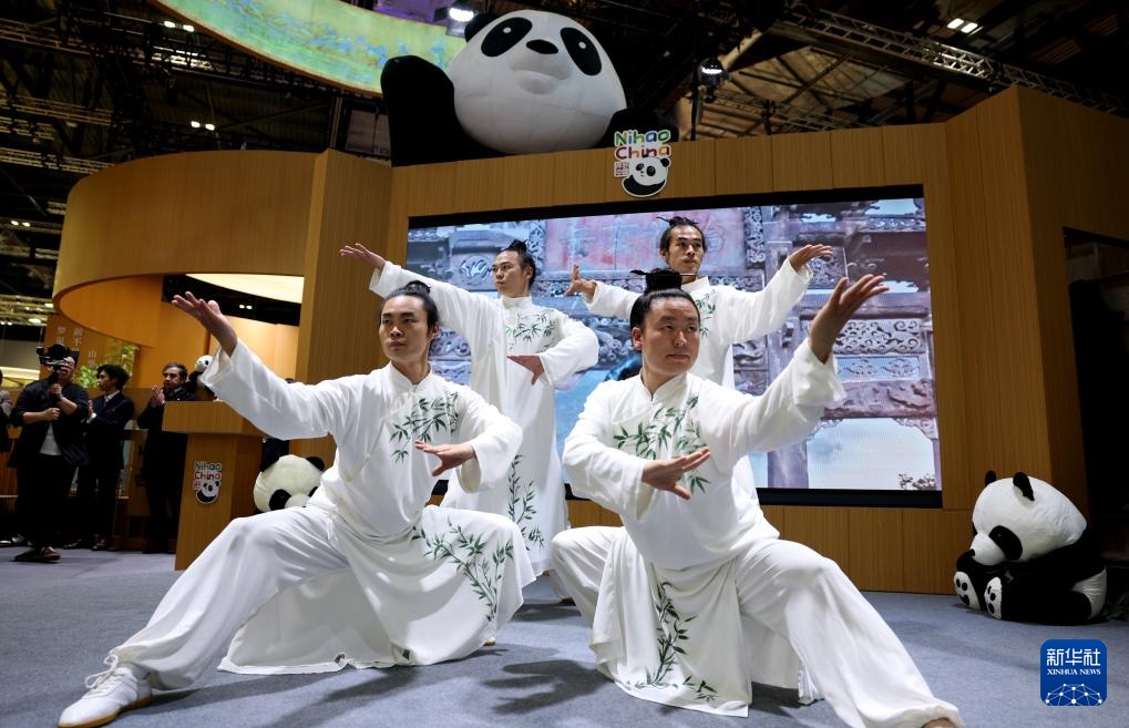 这是11月4日在2025伦敦世界旅游交易会中国展区拍摄的武当功夫表演。