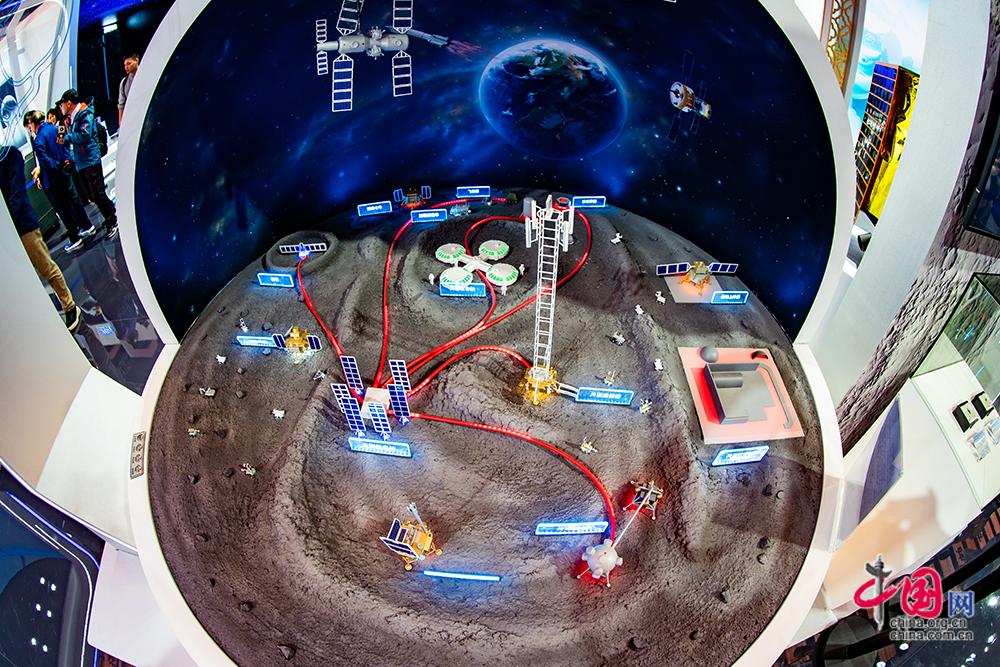 第八届中国国际进口博览会中国馆内展示的探月工程沙盘。中国网记者 郑亮摄