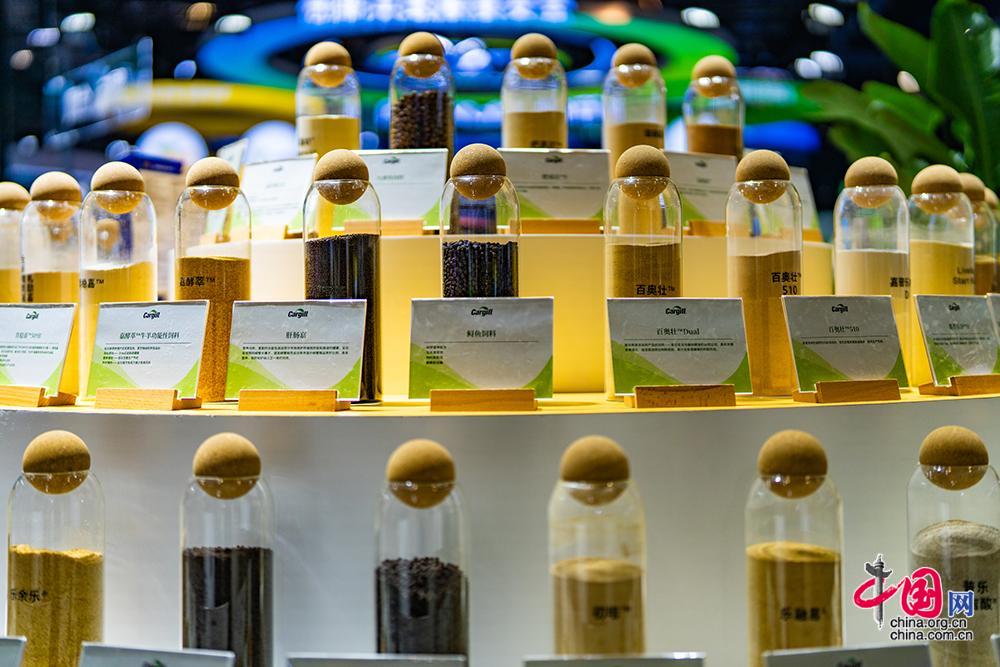 嘉吉公司展示的饲料系列产品。中国网记者 郑亮摄